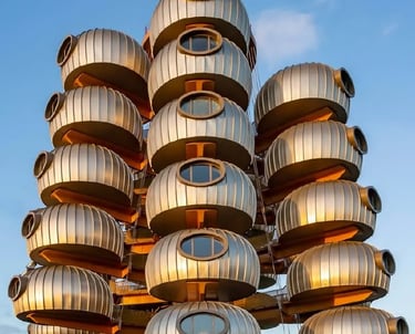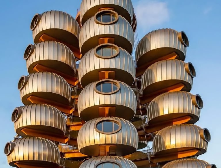 Aux allures avant-gardistes, au design minimaliste et tourné vers la nature. L'Hôtel L'EssenCiel, à l'architecture audacieuse en forme d'arbre, propose avec ses larges oculus un séjour au service de la contemplation et de la deconnexion.